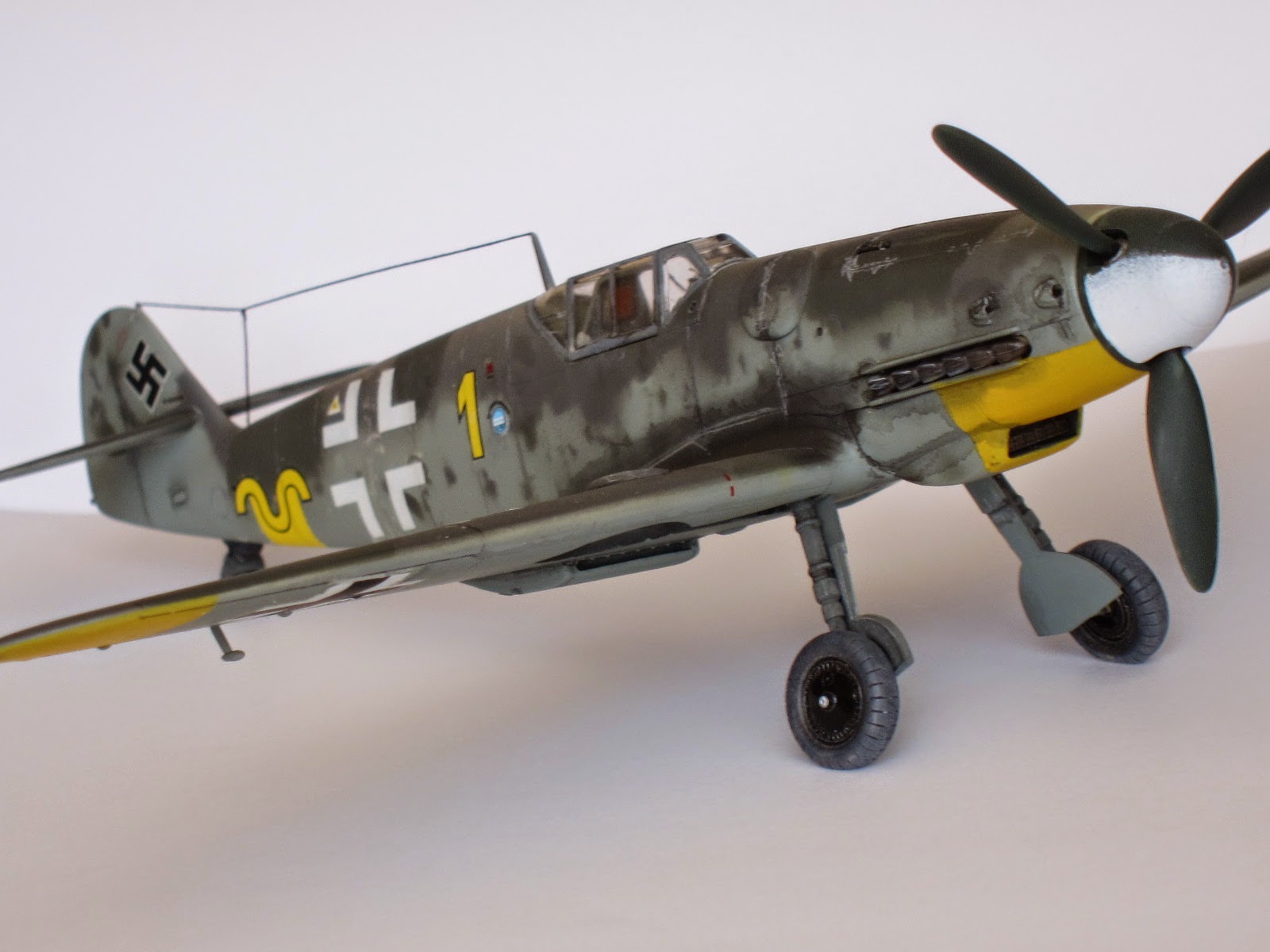 There are some pictures of "Bubi" Hartmann resting alongside this aircraft in Internet, so is not difficult to replicate the camo scheme of this "yellow 1" G6 (Werke Nr 20499).