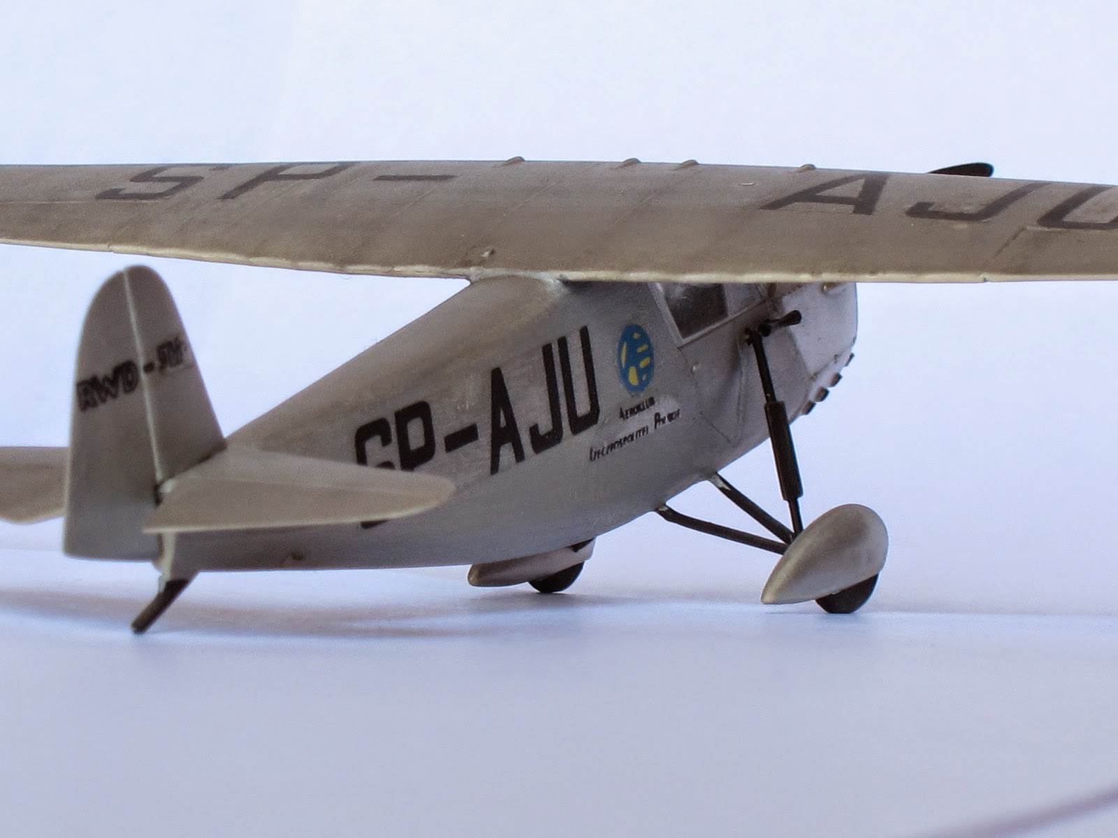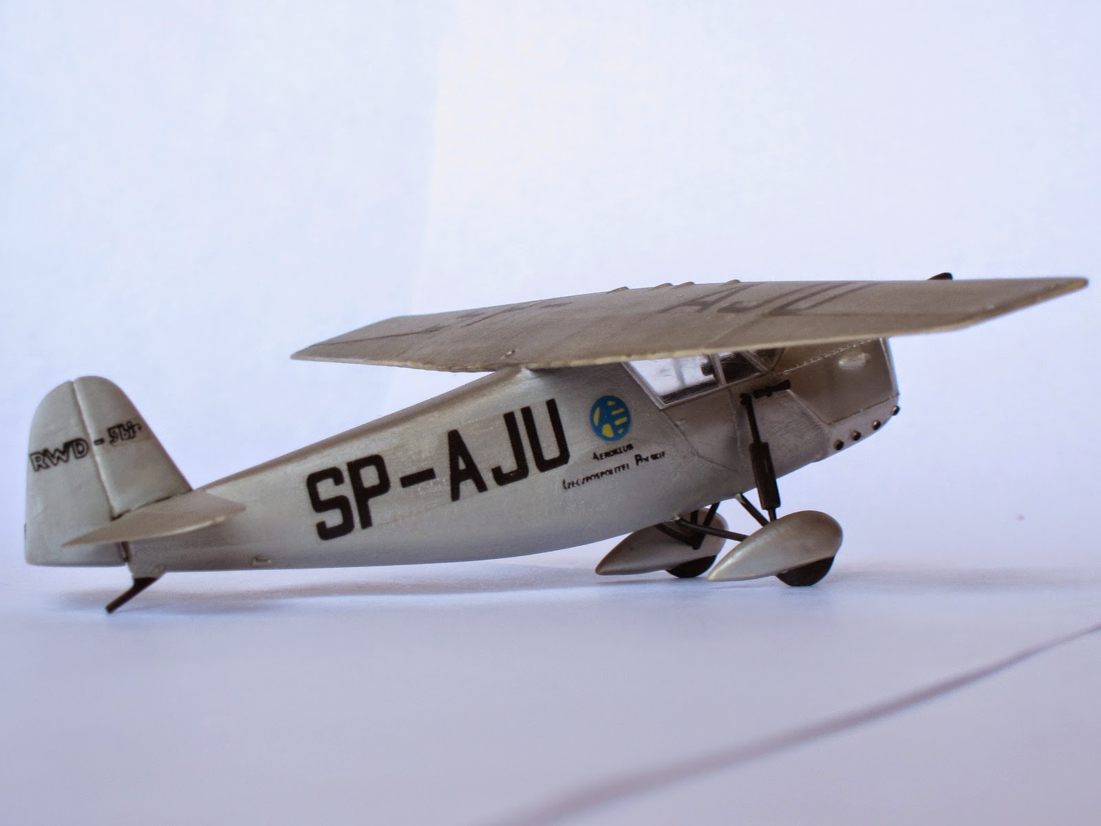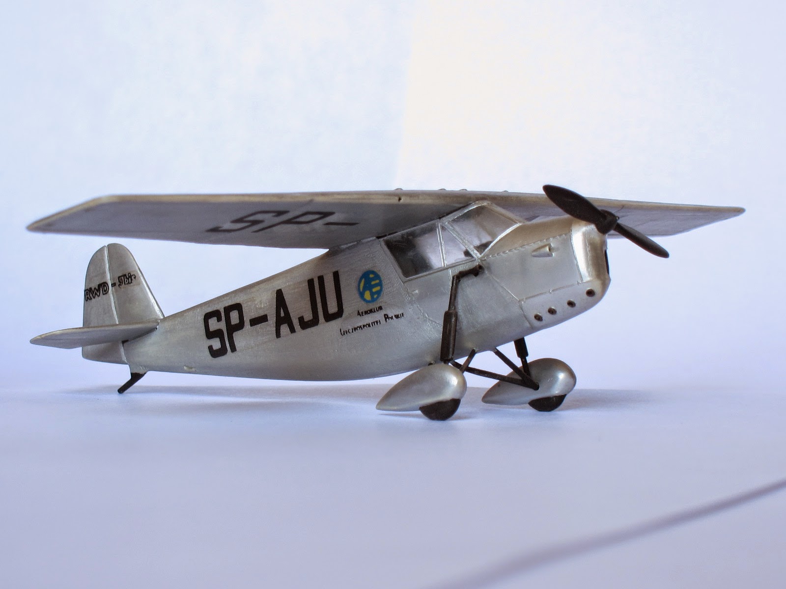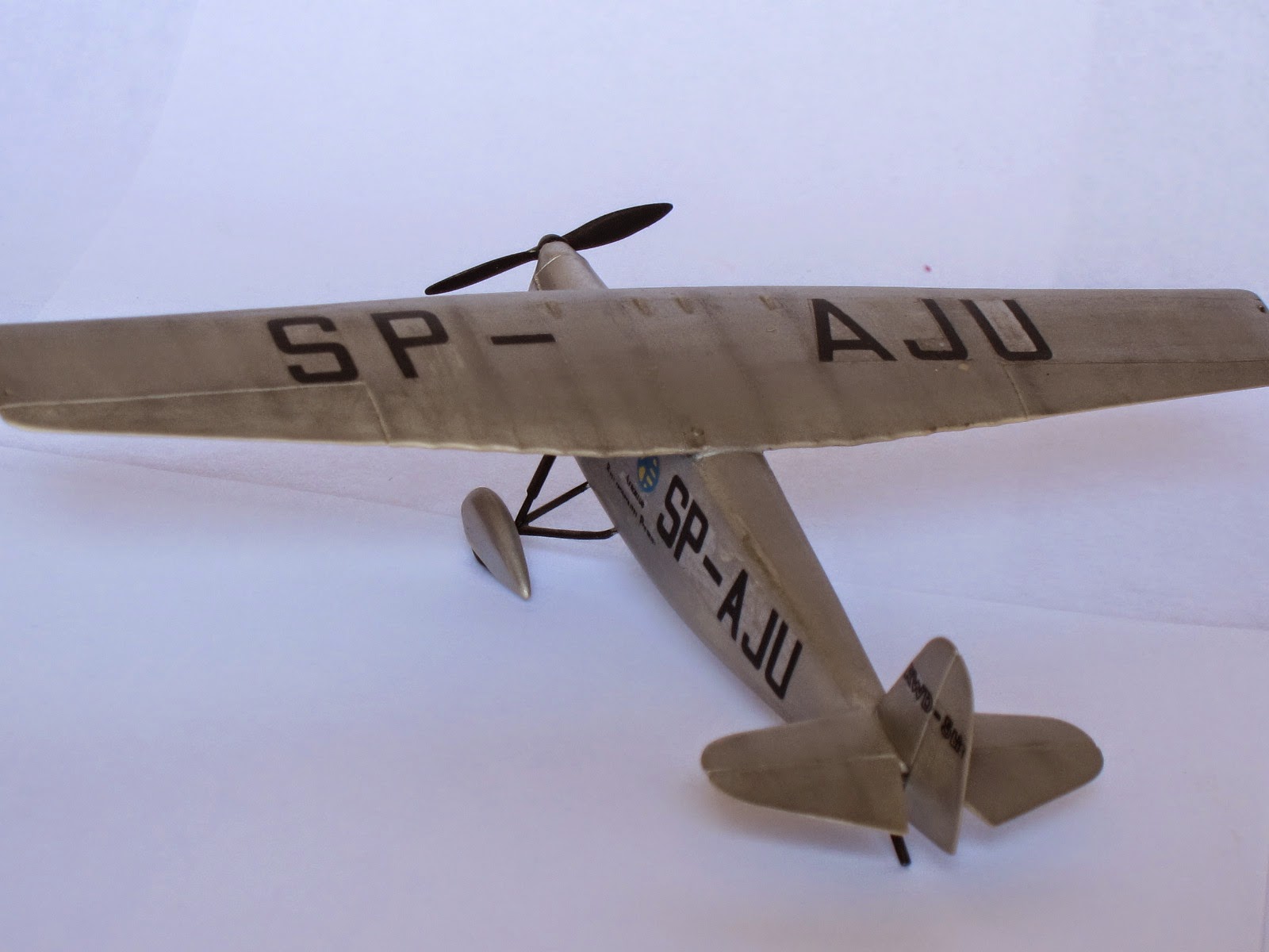 Today, we'll see a little known monoplane designed and constructed in Poland in the thirties. This specific subject "SP-AJU" was conditioned to travel across the Atlantic, being the smallest plane to do that. The front of the plane has the classic shape due to the Gipsy Mayor engine, the ubiquitous British motor found in almost all the small planes of the period. Is easy to found a lot of paint schemes for this little bird. This subject wore a bore natural metal finish, but won the right to be represented by this nice model pricing her historic flight.The kit is delicate and very good presented in 1/72 scale by a polish company ZTS.