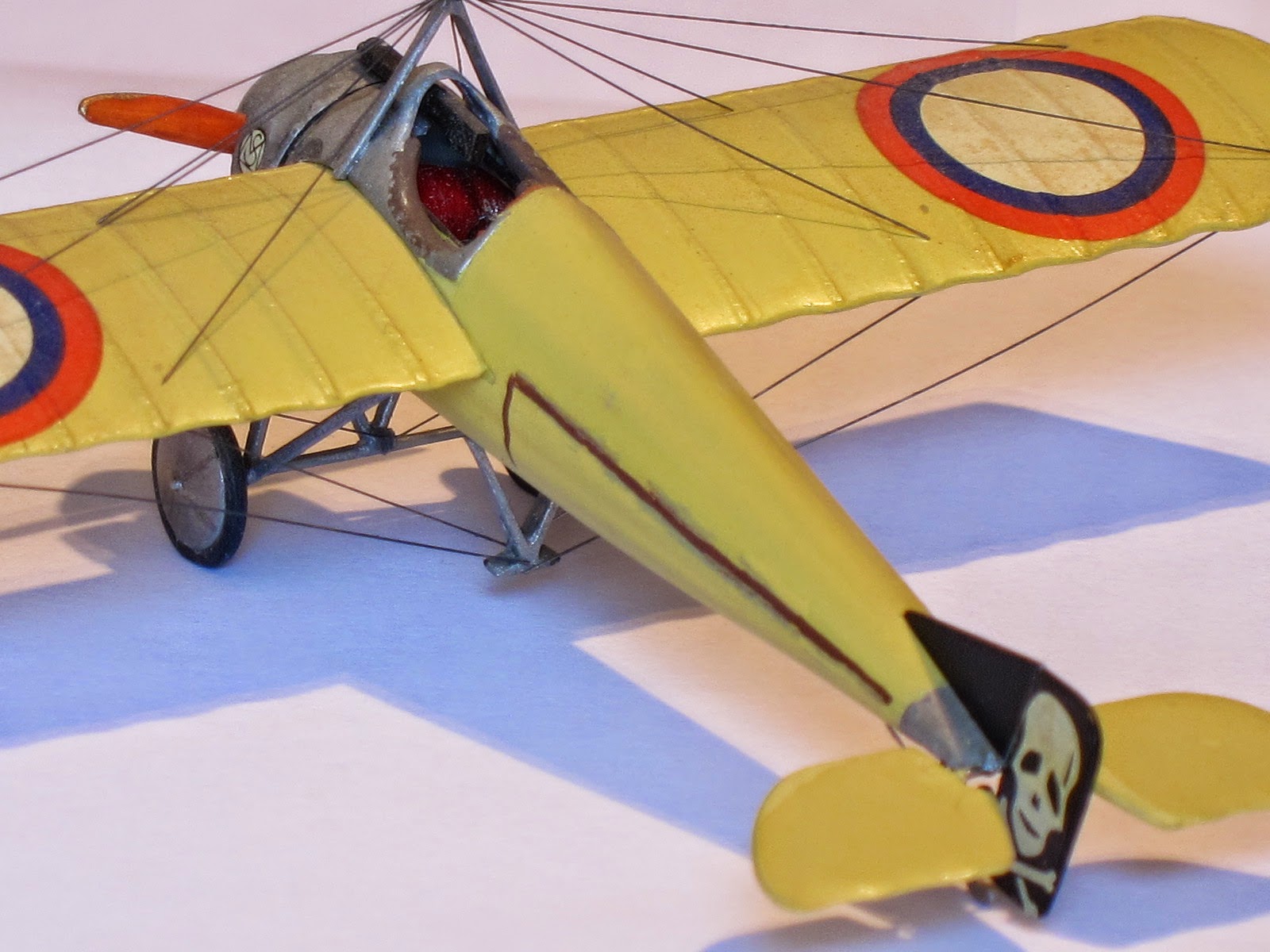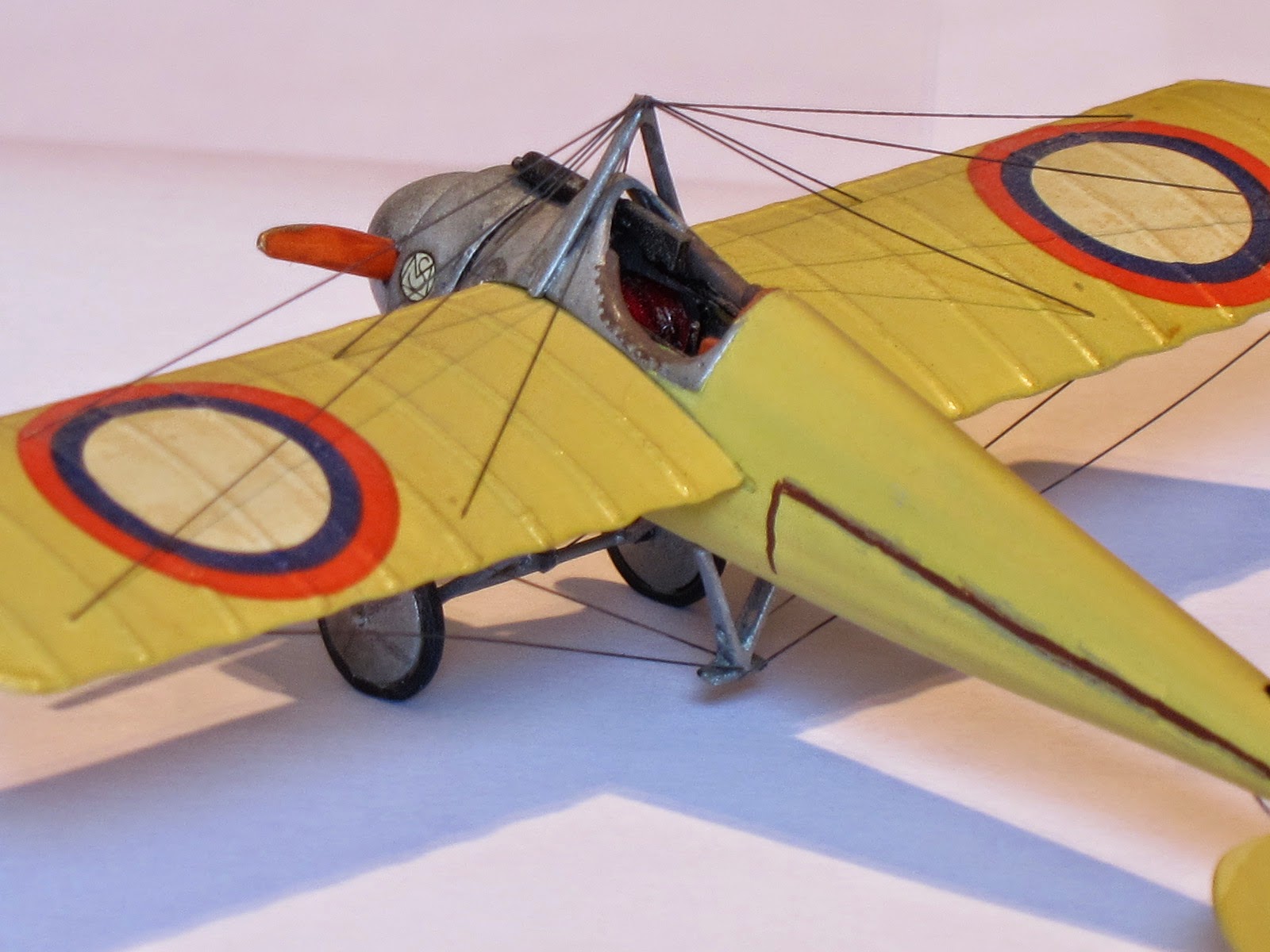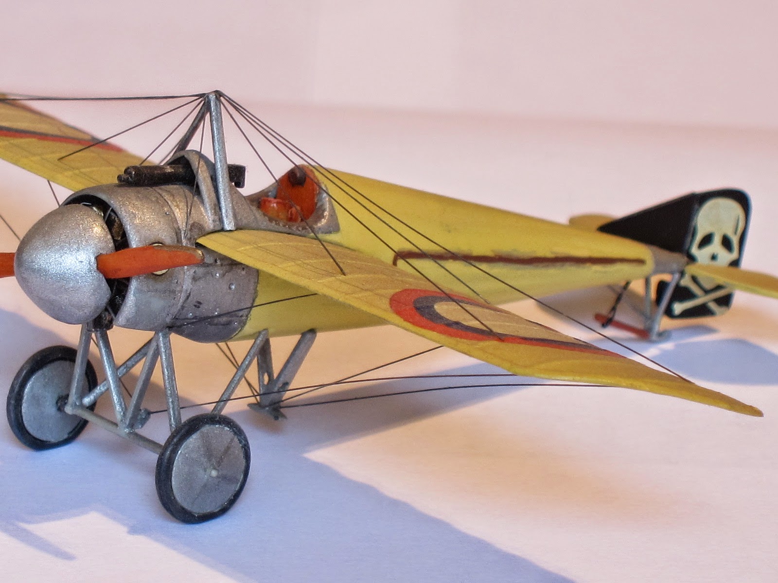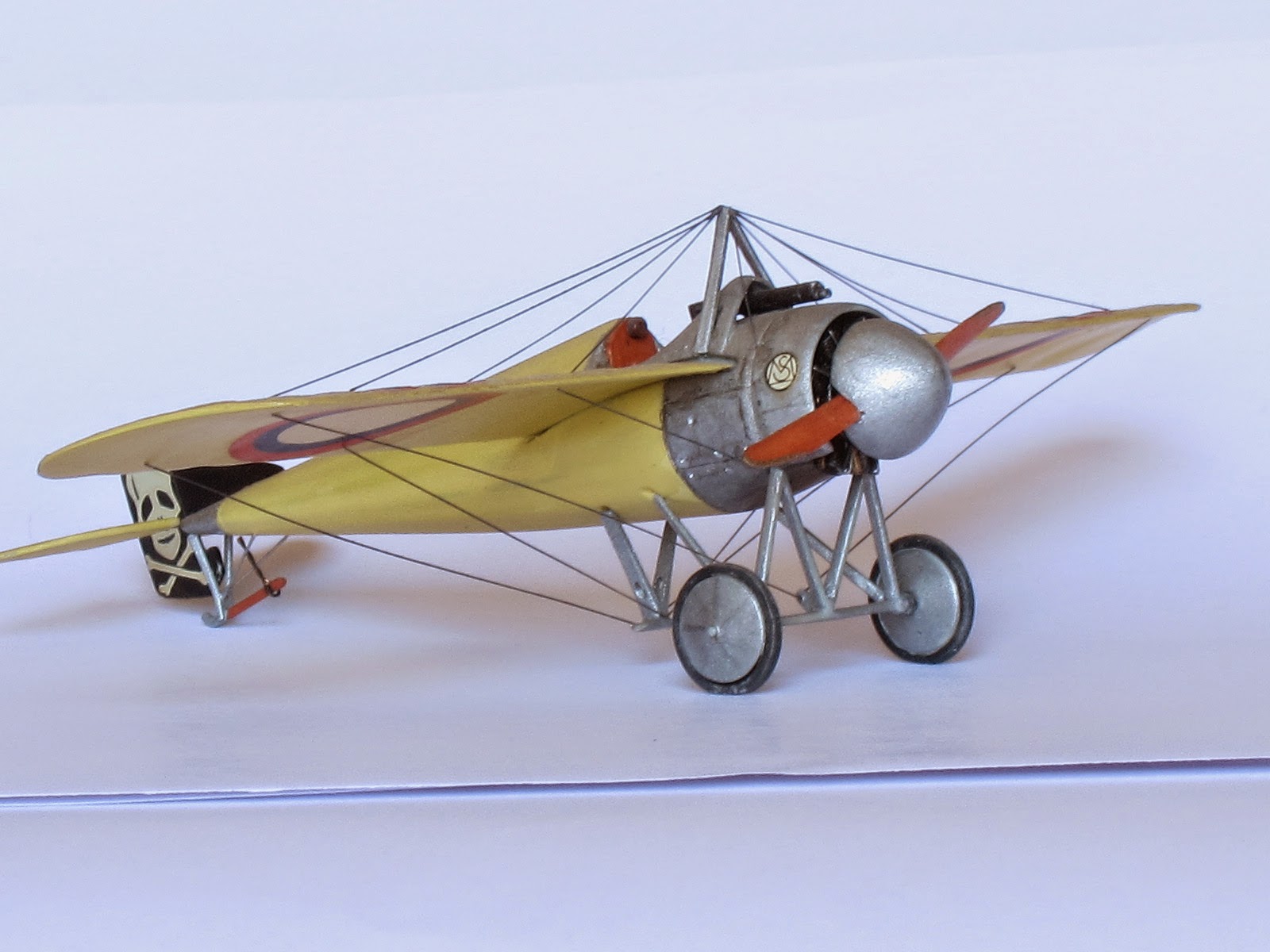 This little machine was one of the most important fighters in French service during the first part of the Great War, and has the honor of being the first aircraft that can fire inside the propeller arc. This extraordinary step in fighter design change the aerial warfare for ever because it simplified the maneuvers for aiming at enemy planes. The real solution for this problem was the "interrupter gear" developed by Anthony Fokker the brilliant dutch engineer. The first pilot to develop the concept, then by a rude method of protect the propeller with a metal against the bullets, and do the trials, with great success was Roland Garros in a Morane Saulnier type L. But Garros was shooting down inside the German lines and taken POW up to the end of the war. Garros could not destroy is plane and this new device fall in German hands. Mister Fokker perfected the idea and create the "interrupter gear" that is in use until today.Some Morane Saulnier type N incorporated this revolutionary device but was not a successful plane due to obsolete use of wing warping and a high landing speed. Then, was destined to Russian service.