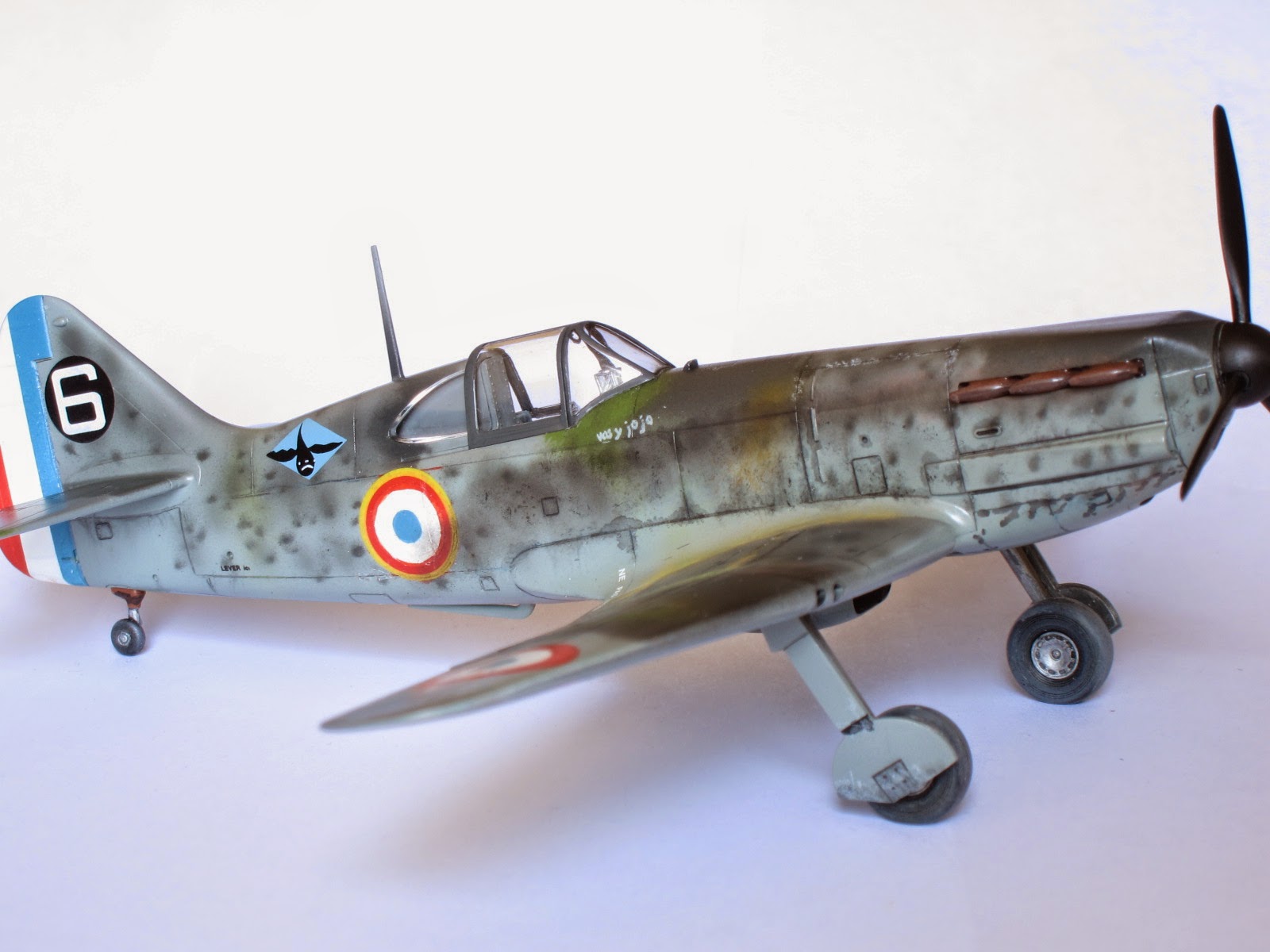 As always with this company products, the construction -OOB- is very straightforward and no putty is required. My box come with the classic white 6 in black disc in the fin, one of the most know-ed D.520 in the Free French Air Force (with the hand write legend "vas y jojo" in the cockpit starboard side) . It's an specially dirty and multi-colored example of that era.