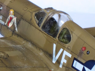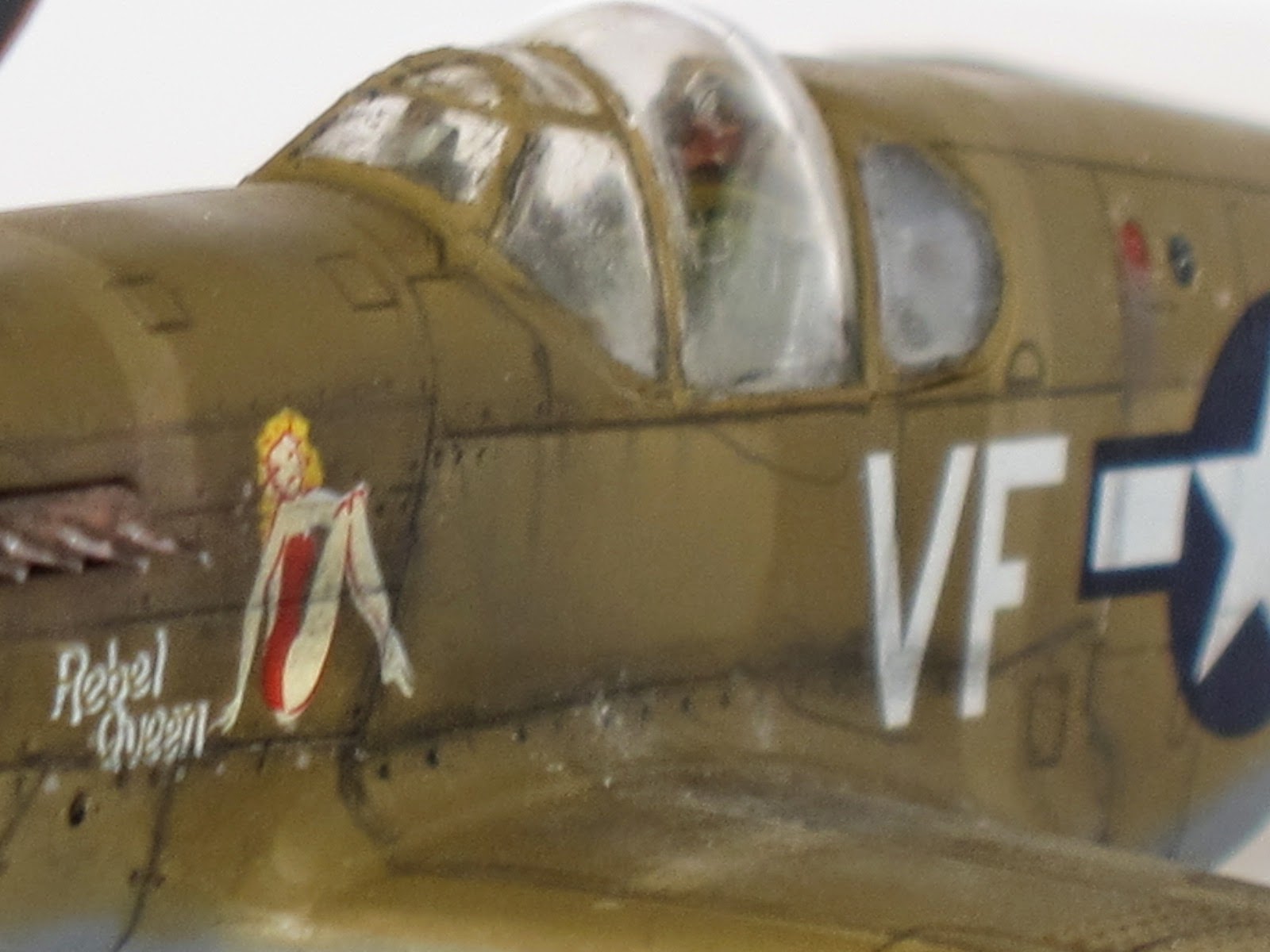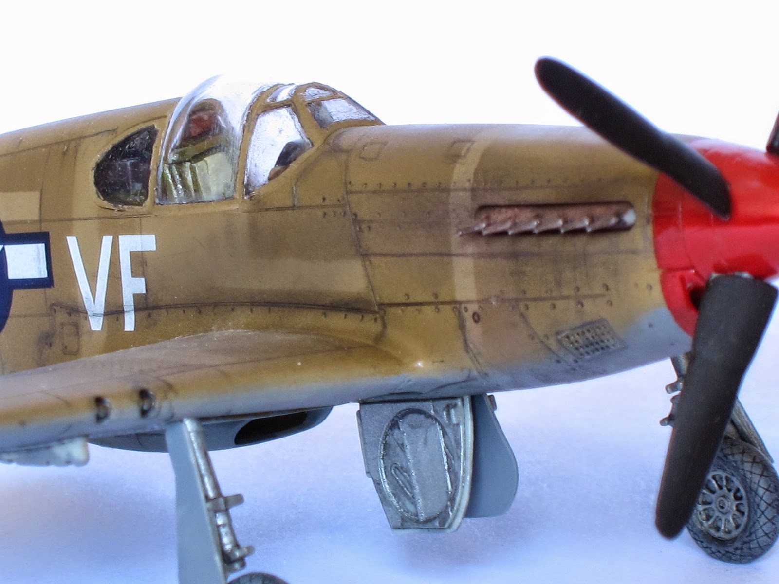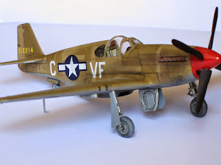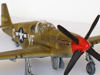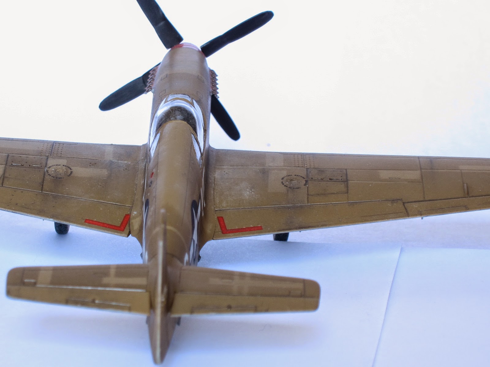 This is the excellent Academy kit in 1/72 of that early P-51fighter, equiped with Packard engine, Malcolm hood and four bladed propeller with scuffs specially designed for British RAF. They, named Mustang to that specific aircraft but was so popular that Mustang became the standard name for any P-51 variant.The kit is a little gem, full of details, extremely easy to build and a temptation for modeller, like me, to over extend the level of weathering needed to reflect the real operational planes. Anyway, a beautiful subject at all.