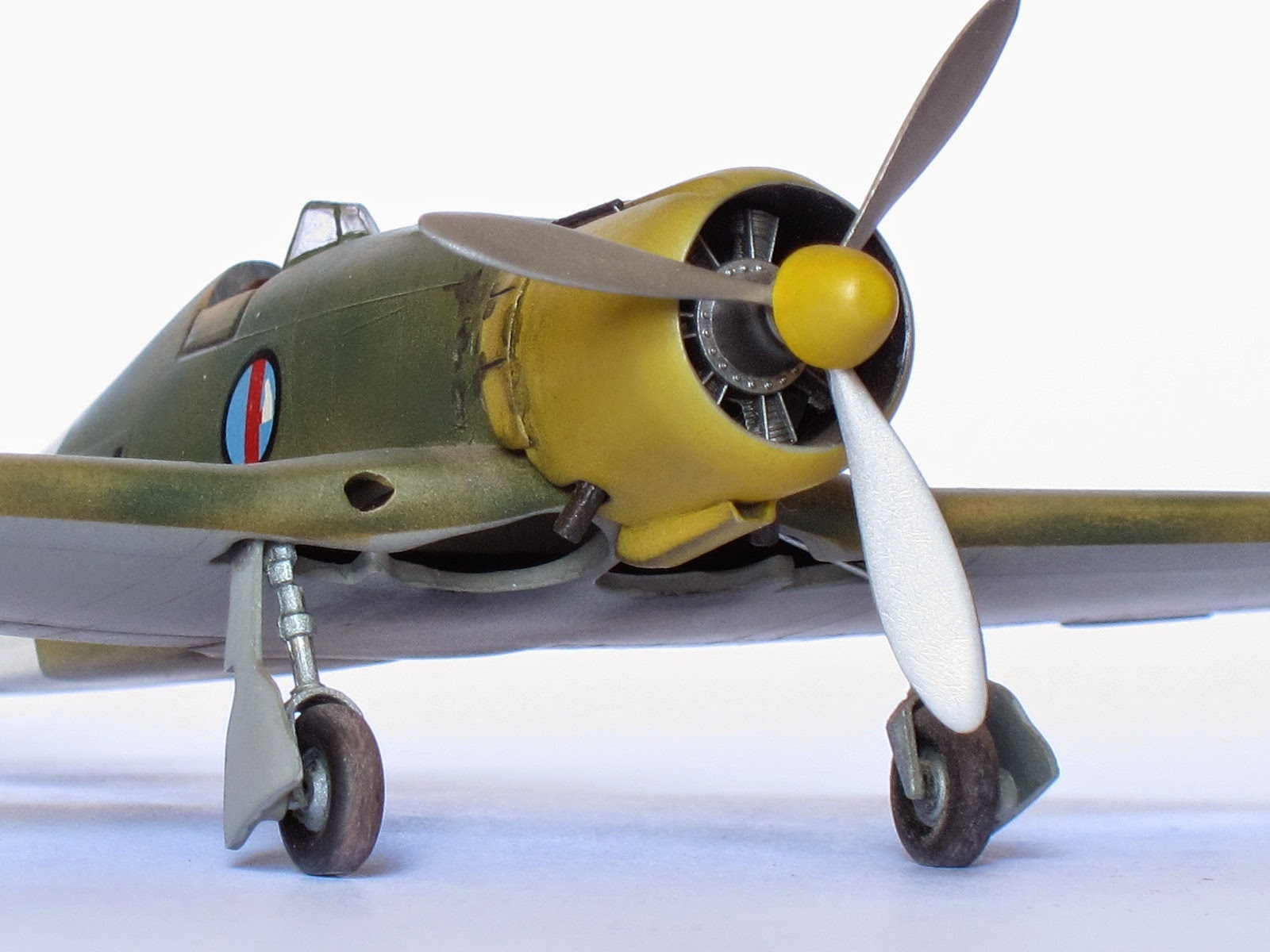 This model was based in the 80's batch launched by Airfix, been the kit exactly like my first one. Surprisingly, in spite of the serious limitations of the molds, the radial engine is a little gem...not accurate by very well detailed. The cockpit is spartan, but very easy to complete with some wire to imitate internal structure, a lot of sanding to reduce the thickness of trailing edges of wings and empennage and replacing the capot machine guns by syringe needles.