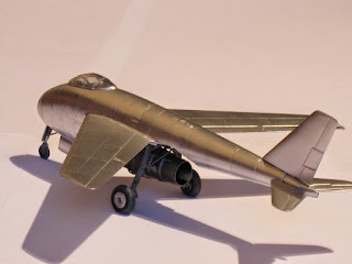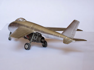 Mi subject is inspired in the very known pictures of this interesting plane: very low standard construction, with no sealant in the joining of metal plaques, very hammered plaques to conform the structure, etc. I'd decide to incorporate the final engine, the HeS011, that was never ready to install in this plane at the moment of its discovering.