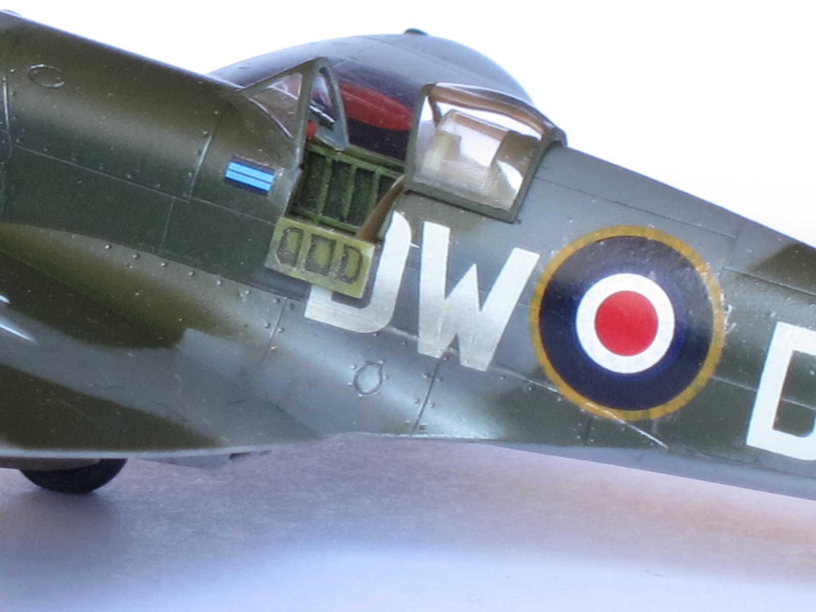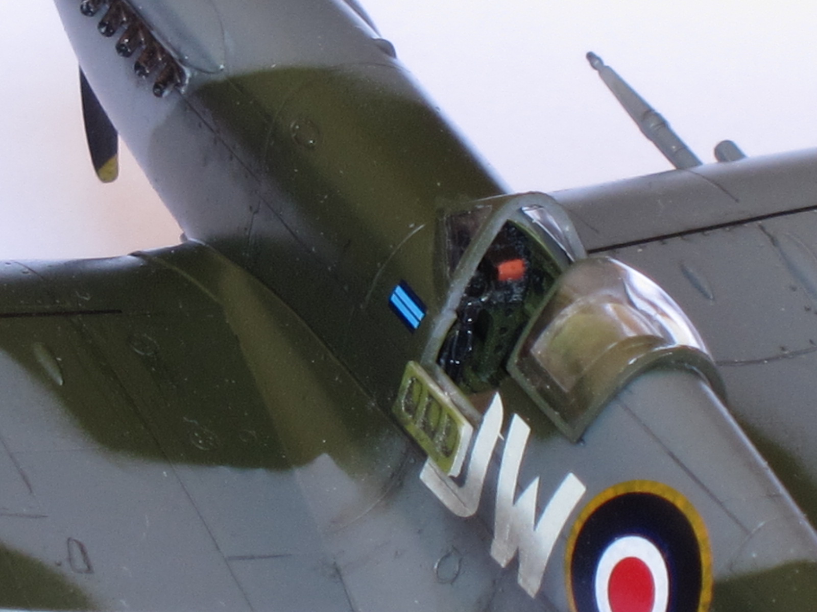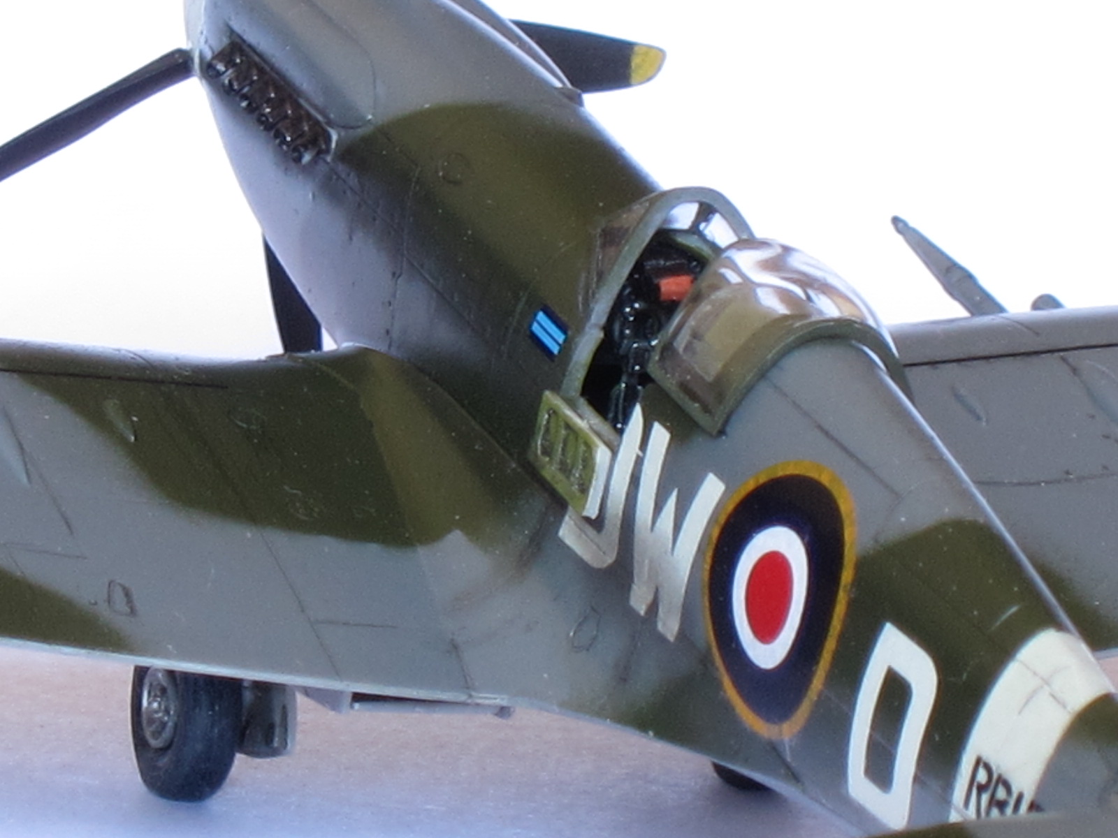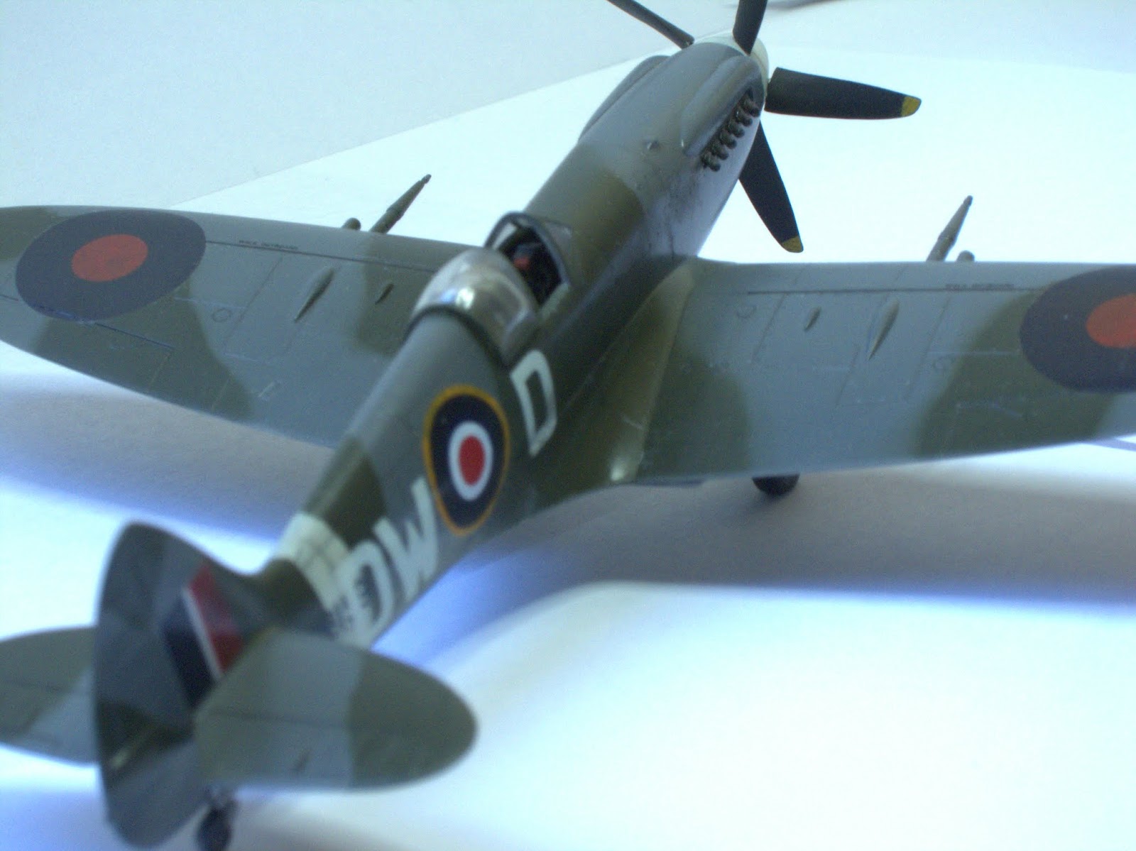 One special note to say about this plane, Mk.XIV was the first member of this extraordinary family in use the powerful Griffon engine (specially designed for Spitfire with two superchargers), representing a big step ahead in performance with respect the Mk.IX variant.This is the Academy kit in 1/72 scale, one of the better kits of this important company. A real pleasure to build, needs no putty, perfect alignment, excellent level of detailing...if you want, may thin the filters edges (I did not). Painting by hand the propeller blades was a mistake, a light pass with airbrush would had been better (thinner than hand brushing).