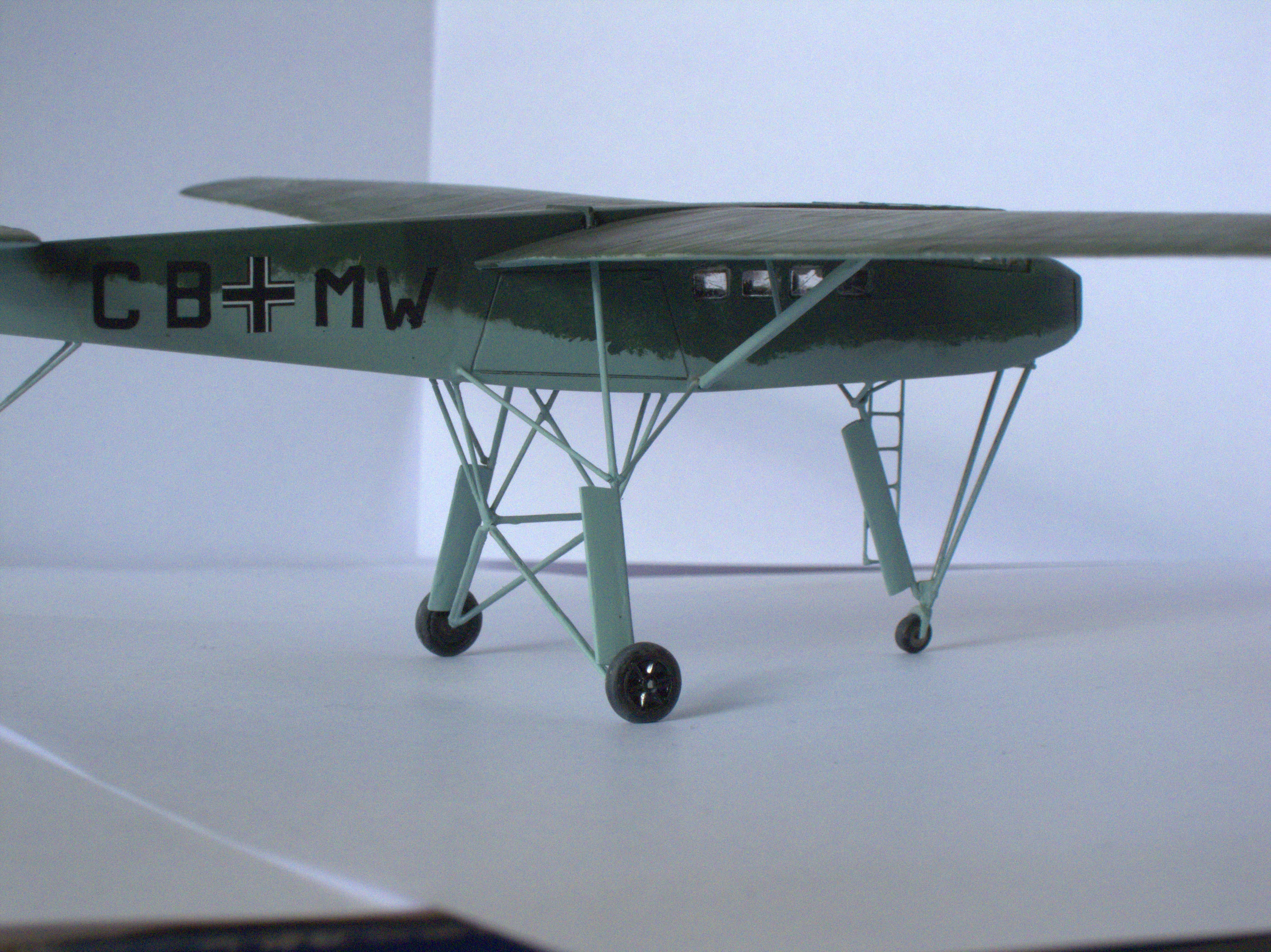 When I saw this special glide for first time, I fell in love. The distinctive aspect of the "hochbein" (long legs) was an immediate motivation to build a model of it. This glider was prepared for pilot training before piloting the Me-321 glider.
